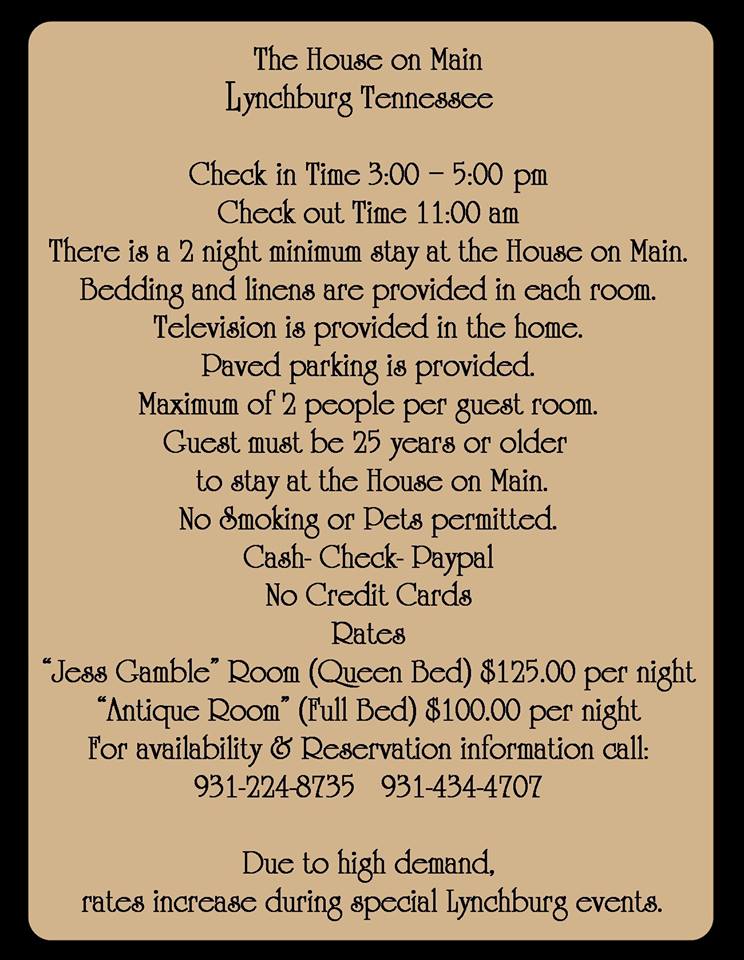 2 bedrooms are available at the House on Main. The houses’s location is walking distance to Historic Lynchburg Public Square, Jack Daniels Distillery, and Miss Mary Bobo’s Boarding house.